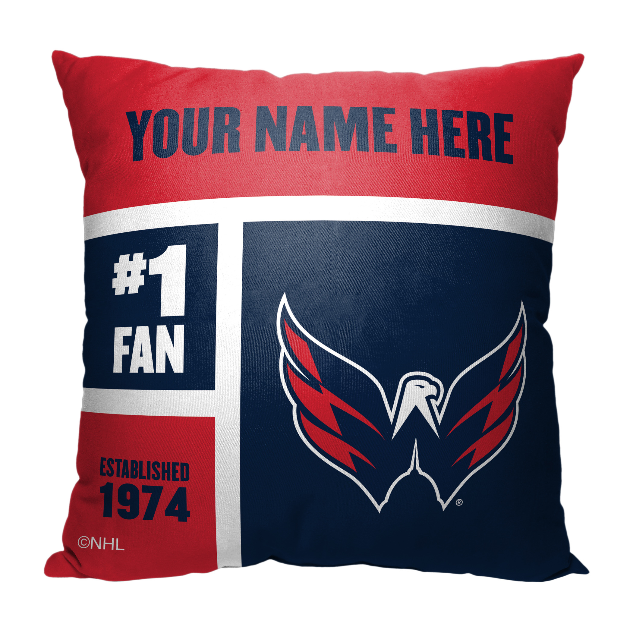 Decorate your couch with an Officially Licensed NHL "Colorblock" Personalized Pillow by TheNorthwest. Proudly show off your favorite hockey team with this soft and comfortable 18"x 18" square pillow that features your personalization in a color block layout above the team logo, established year, and number 1 fan. Give this personalized pillow as a special gift or personalize one for yourself!